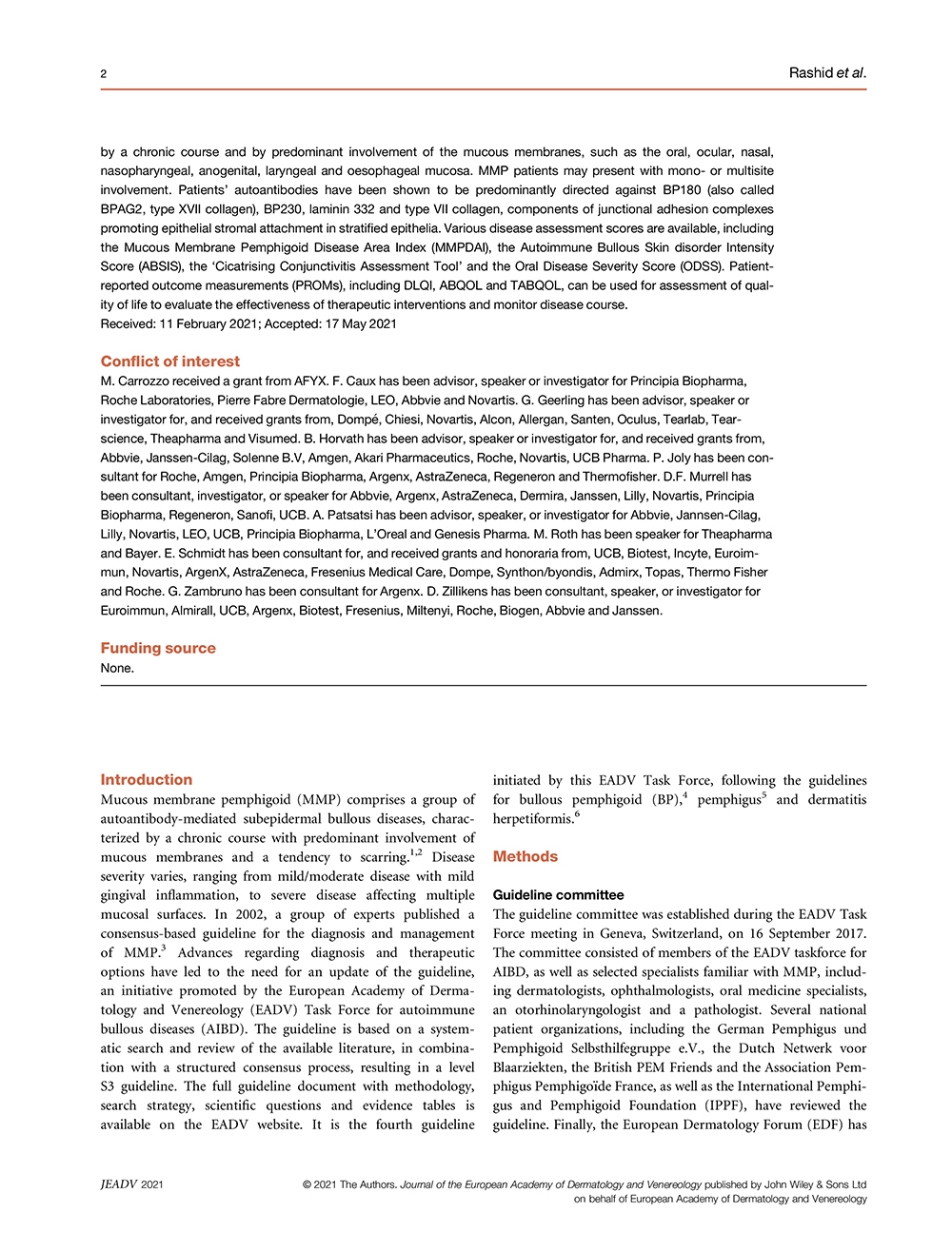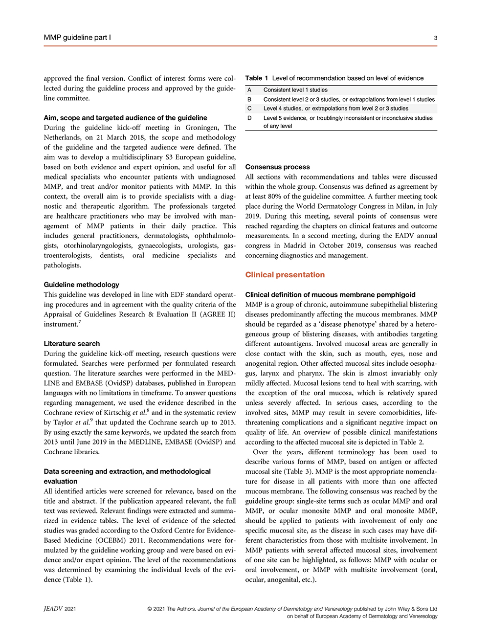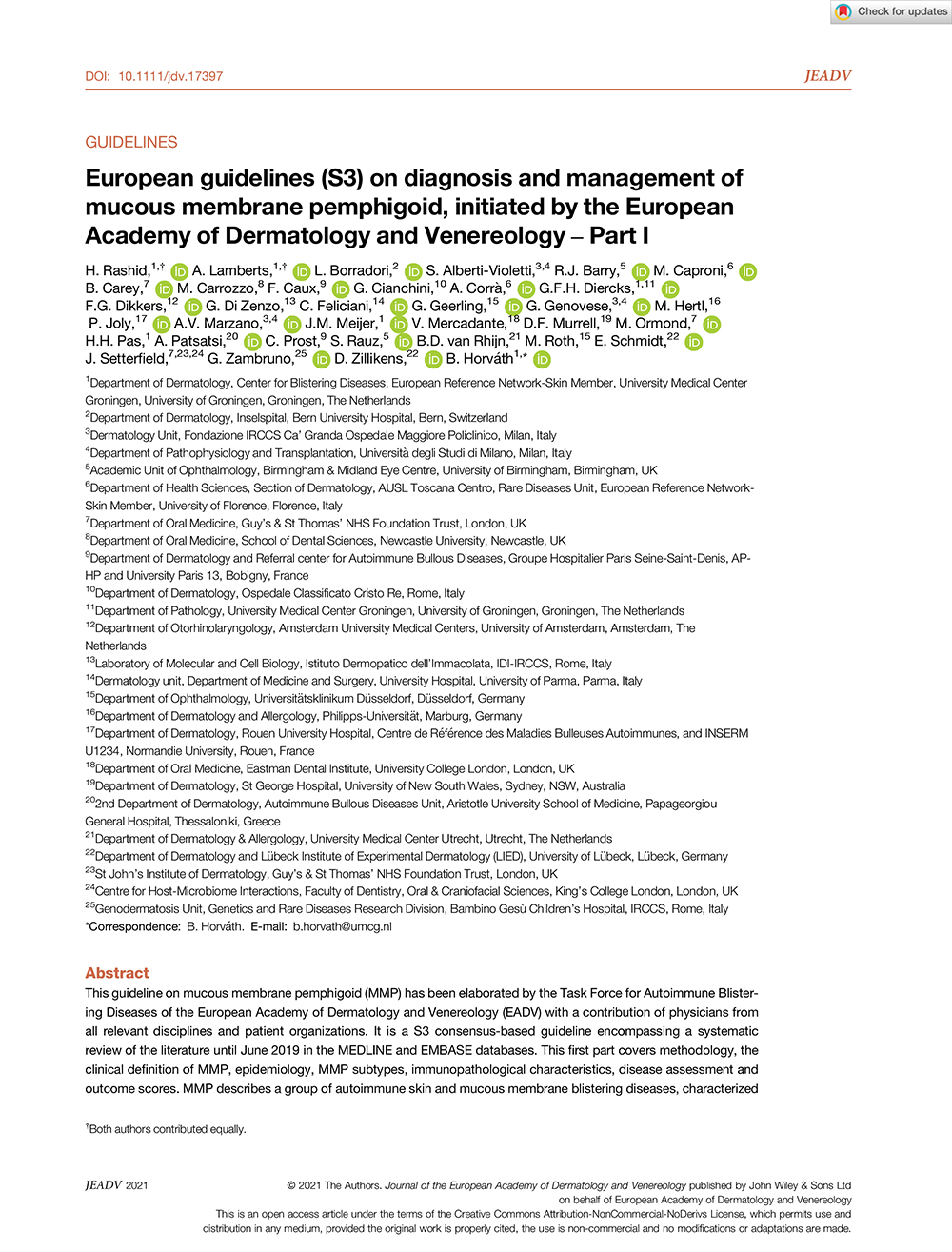 European guidelines (S3) on diagnosis and management of mucous membrane pemphigoid, initiated by the European Academy of Dermatology and Venereology
