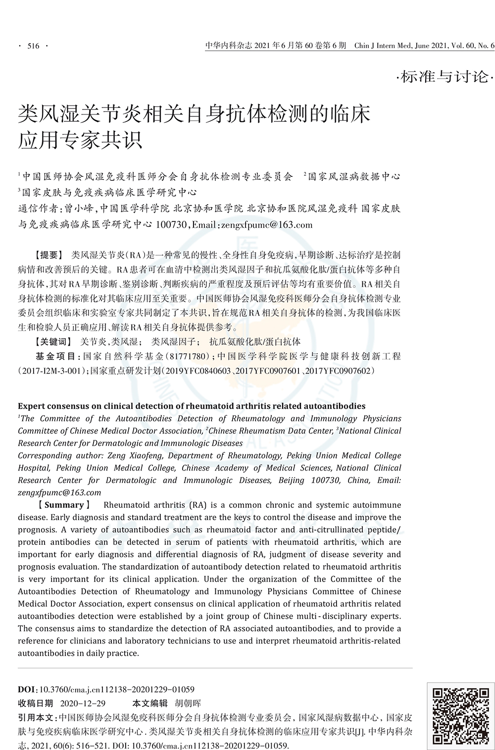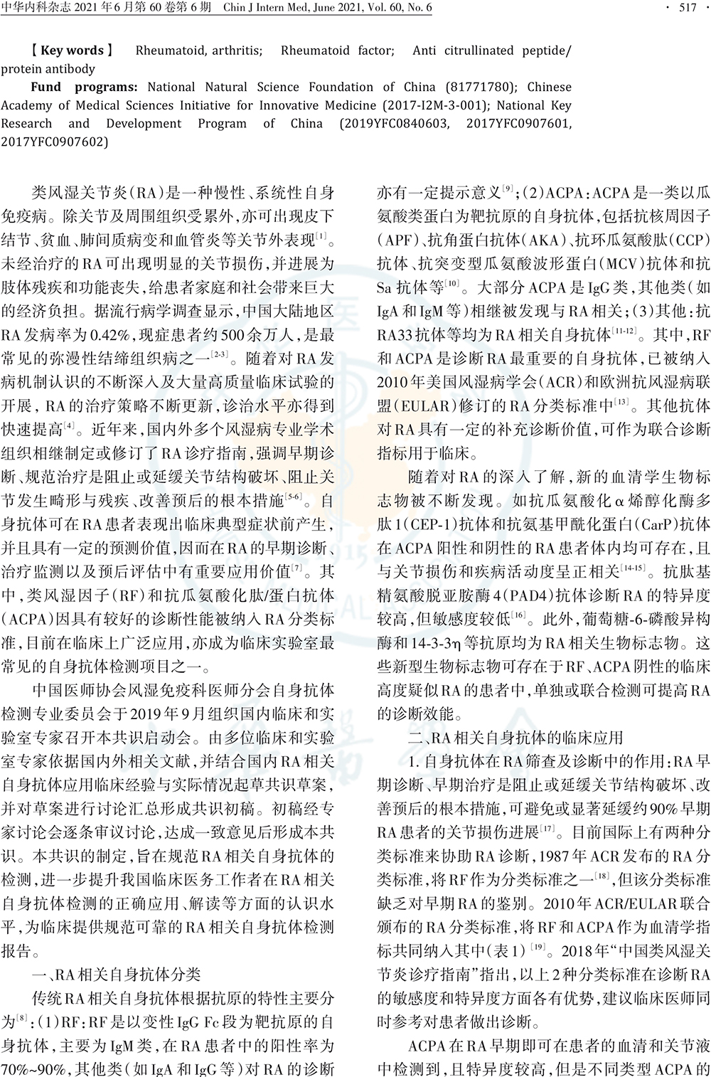類風濕關節炎相關自身抗體檢測的臨床應用專家共識