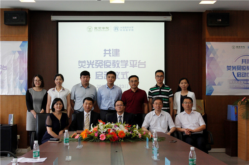 近日,歐蒙學院攜其“高校聯盟”項目來到大連醫科大學檢驗醫學院,雙方在歐蒙獎學金和熒光免疫教學平臺共建領域展開深入合作,“大連醫科大學檢驗醫學院-歐蒙學院簽約暨共建熒光免疫教學平臺啟動儀式”也于2016年6月23日上午隆重舉行。