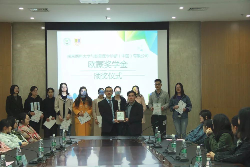 南京醫(yī)科大學(xué)第一臨床醫(yī)學(xué)院黨委常務(wù)副書記蘇榮健、黨委副書記鄒伶俐出席了歐蒙獎學(xué)金頒獎儀式。儀式上,蘇榮健書記表達了對歐蒙亞太集團的感謝,勉勵獲獎同學(xué)在今后的學(xué)習(xí)中再接再厲、追求卓越,同時鼓勵現(xiàn)場其他同學(xué)以獲獎同學(xué)為榜樣,志存高遠、勇創(chuàng)佳績!本次活動共有10位優(yōu)秀的臨床醫(yī)學(xué)、醫(yī)學(xué)檢驗技術(shù)本科生獲得歐蒙獎學(xué)金。隨后,蘇書記代表南京醫(yī)科大學(xué)第一臨床醫(yī)學(xué)院向歐蒙學(xué)院院長沈聰先生贈送了“筑夢樹人,共譜華章”的感謝狀,感謝歐蒙亞太集團對南京醫(yī)科大學(xué)學(xué)子的熱情資助、關(guān)心和激勵。