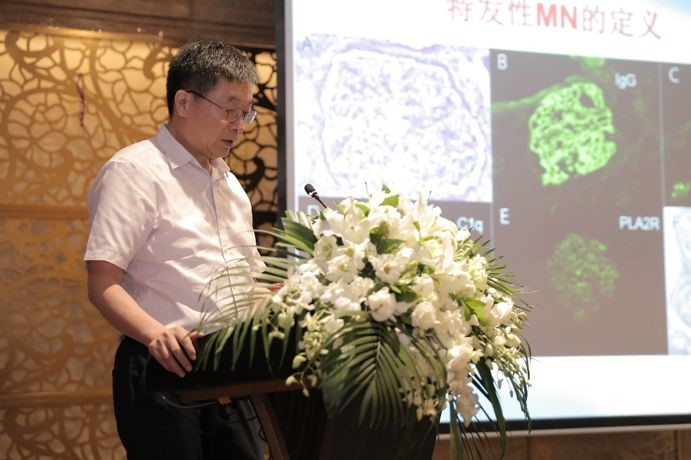 論壇首先由兩位我國權威腎臟病學專家進行了相關疾病的學術報告分享。趙明輝教授以抗腎小球基底膜(GBM)病的進展為題,從抗GBM病四類表型切入,系統闡述了課題組在抗GBM病病因和致病機制上最新研究進展和以分子模擬理論為基礎尋找引起抗GBM病潛在致病微生物的研究成果。趙教授的報告受到了與會專家的高度評價,并引發了現場同仁的熱烈討論,對相關疾病研究起到積極啟迪與推動作用。隨后,邢昌贏教授進行了血清標志物在膜性腎病診治中的研究進展的學術報告。邢教授綜合論述了目前對膜性腎病發病機制的研究進展,結合實際情況分析了標志物在臨床應用中的問題和意義,并從實際病例出發強調了部分膜性腎病與癌癥的相關性,引起在場專家與同仁的高度重視。