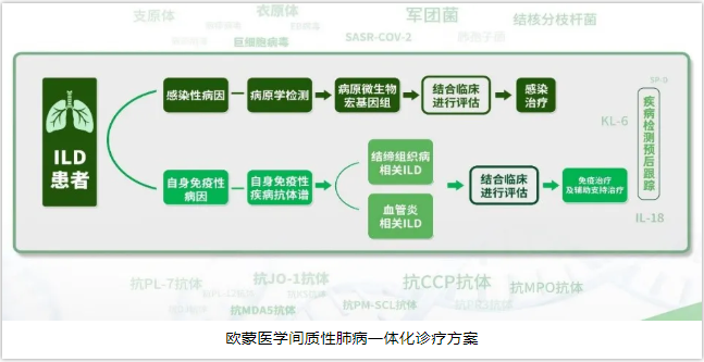 間質性肺疾病(ILD)是臨床高發且診治較為困難的一大類疾病,也是呼吸科醫師常常面對的棘手難題。周教授分別從免疫學檢測和病原學檢測兩個角度,詳細介紹了間質性肺疾病的一體化臨床診斷思路。