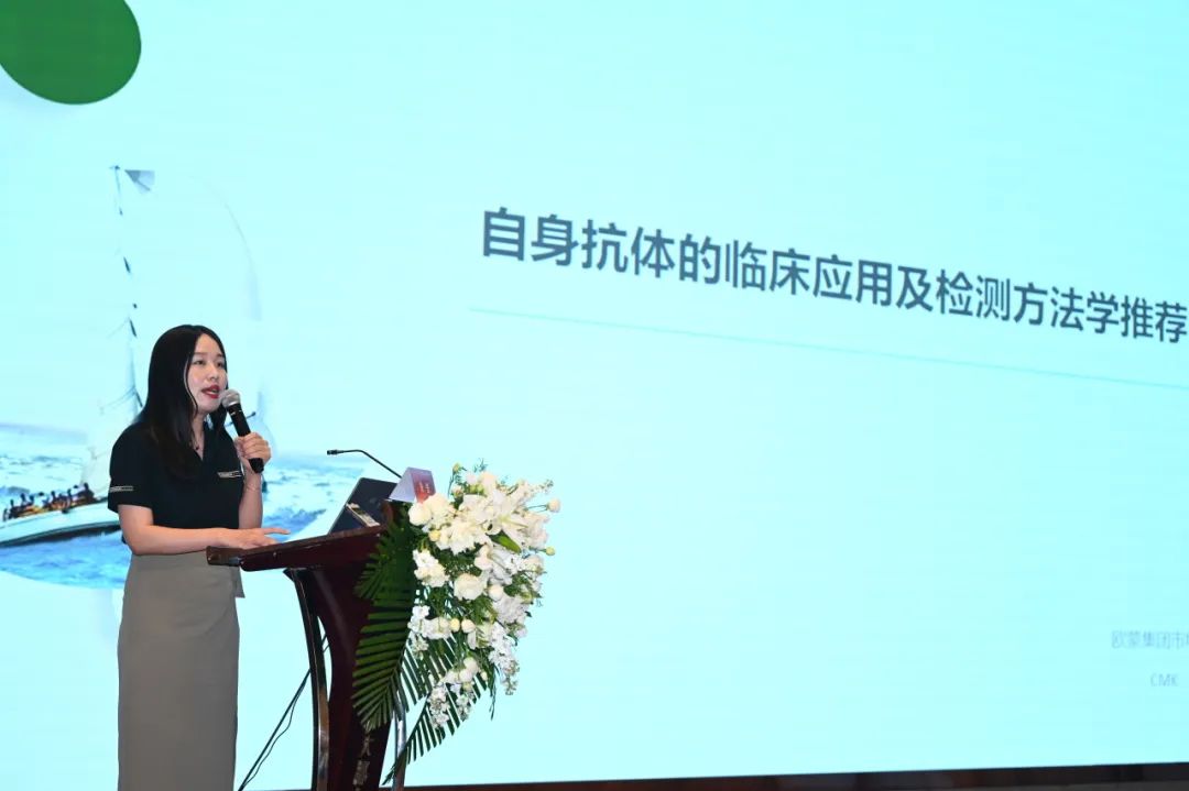 朱女士進行了題為“自身抗體的臨床應用及檢測方法學推薦”的學術報告,作為本次會議的承辦單位,她首先代表歐蒙公司對各位遠道而來的老師表示了感謝。她指出,自身抗體在自身免疫性疾病診療過程中的很多環節都具有重要的應用價值,如預測、診斷、鑒別診斷、治療監測和預后評估等。截至目前用于自身抗體檢測的方法學非常豐富,除了經典的IIF、ELISA、放射免疫法及免疫印跡法之外,還有被逐步應用于自身免疫性疾病領域的化學發光法。作為ANA檢測的金標準,IIF通常被用作進行總抗體的篩查,它憑借著自己的諸多優勢,在自身抗體檢測方面始終無可替代。免疫印跡法,在特異性抗體確認方面,一直以來應用率都是最高的,占了80%左右,且經過了長年的臨床驗證,其檢測性能也是非常穩定的。化學發光法,在自身抗體檢測領域應用率越來越高,近兩年NCCL室間質評數據顯示,在ANA特異性抗體確認方面有10%以上的實驗室都已開展了化學發光法。