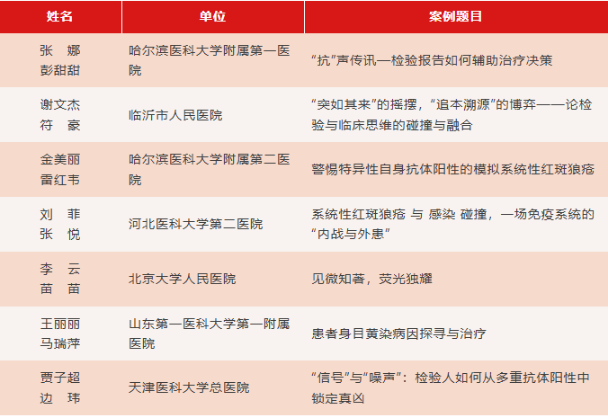 參與北區(qū)展示的18組案例涵蓋多臨床科室,案例分析深入、細(xì)節(jié)豐富,檢驗(yàn)人以實(shí)驗(yàn)數(shù)據(jù)為臨床決策“導(dǎo)航”,突顯出實(shí)驗(yàn)室檢測在自身免疫性疾病診斷中的重要價值。臨床醫(yī)生通過縝密的臨床思維破解診斷迷局,檢驗(yàn)與臨床協(xié)作默契,環(huán)環(huán)緊扣,生動詮釋了檢驗(yàn)分析與臨床實(shí)踐的深度融合。