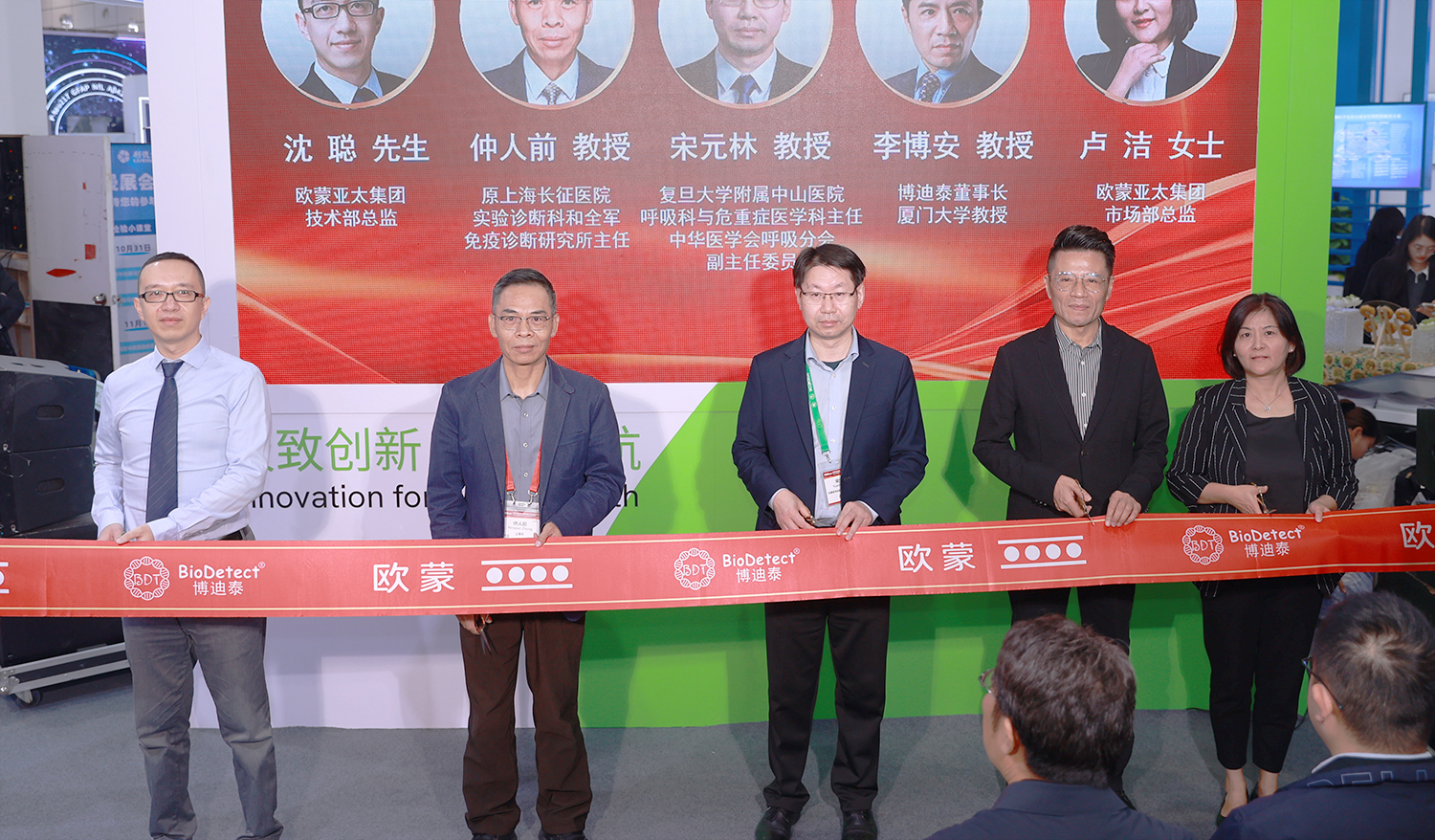 復旦大學附屬中山醫院呼吸科與危重癥醫學科主任、中華醫學會呼吸分會副主任委員宋元林教授,原上海長征醫院實驗診斷科和全軍免疫診斷研究所主任、前中國免疫學會臨床免疫分會主任委員仲人前教授,博迪泰董事長、廈門大學教授李博安先生,歐蒙亞太集團市場部總監盧潔女士以及歐蒙亞太集團技術部總監沈聰先生親臨現場,與現場嘉賓共同見證歐蒙呼吸道病原體檢測全方位一站式解決方案的隆重發布。
