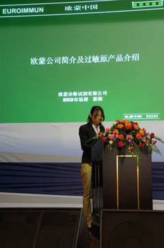 此外,歐蒙還邀請了國內外著名的變態反應病專家,世界變態反應學會和歐洲變態反應學會會員,沈陽軍區總醫院主任醫師林小平教授就《免疫印跡法檢測過敏原臨床應用》做了精彩的演講。林教授指出:血清學檢測過敏原可以避免點刺法檢測不良的影響因素,而免疫印跡法血清學檢測過敏原具有一次檢測多項、采血量少、配套自動化儀器、性價比高等特點,必將廣泛應用于臨床。