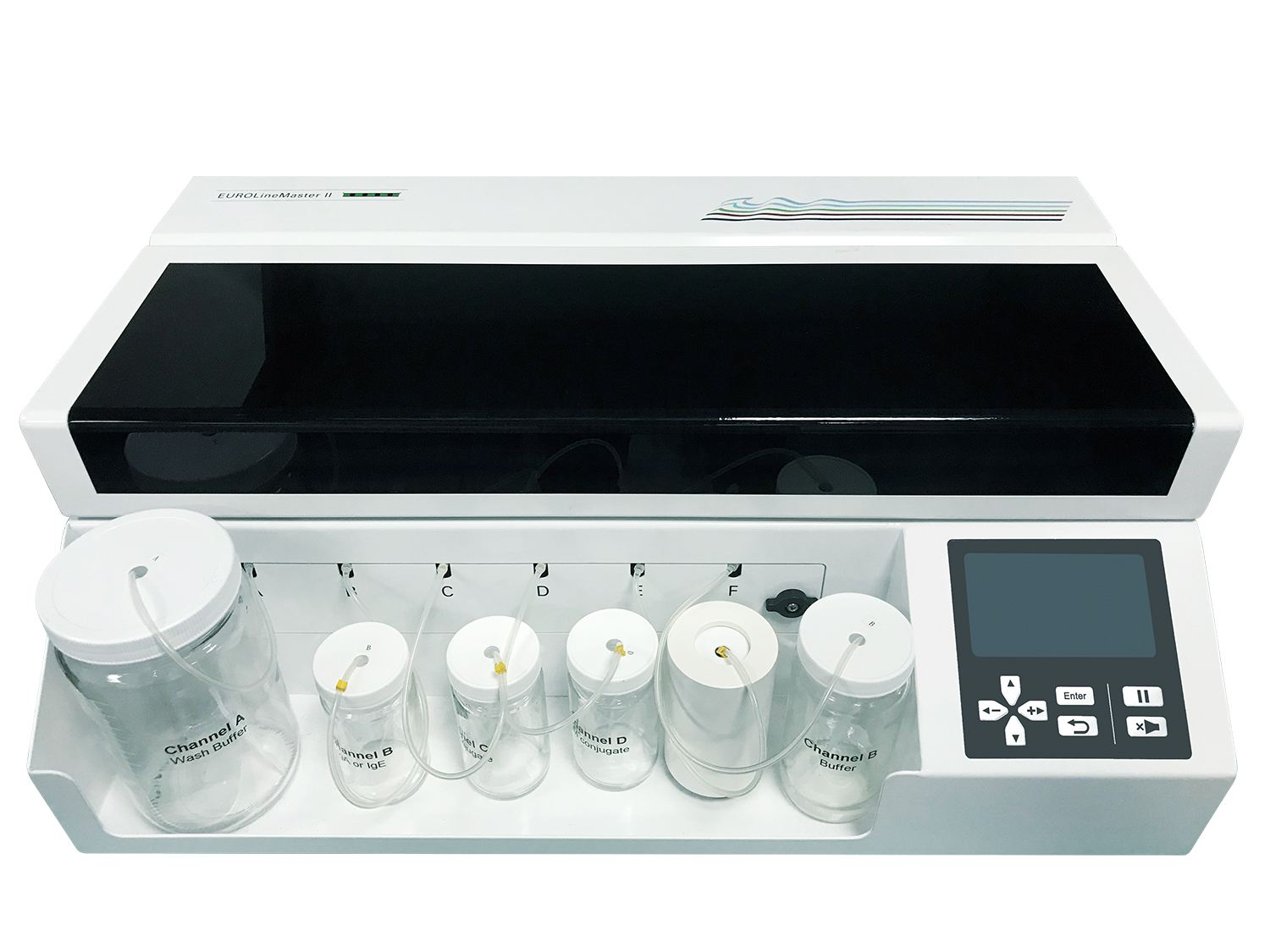 EUROLineMaster Ⅱ是一款針對免疫印跡實(shí)驗(yàn)的全自動操作儀器,設(shè)備執(zhí)行檢測項(xiàng)目所有的孵育和洗滌步驟,以及試劑的分配。通過配備相應(yīng)的判讀儀和判讀軟件(EUROLineScan)可進(jìn)行結(jié)果判讀,實(shí)現(xiàn)了免疫印跡實(shí)驗(yàn)自動化、標(biāo)準(zhǔn)化檢測操作。適用于所有的歐蒙印跡膜條,在一臺設(shè)備上即可實(shí)現(xiàn)自身抗體、病原體抗體和過敏原檢測的組合。
