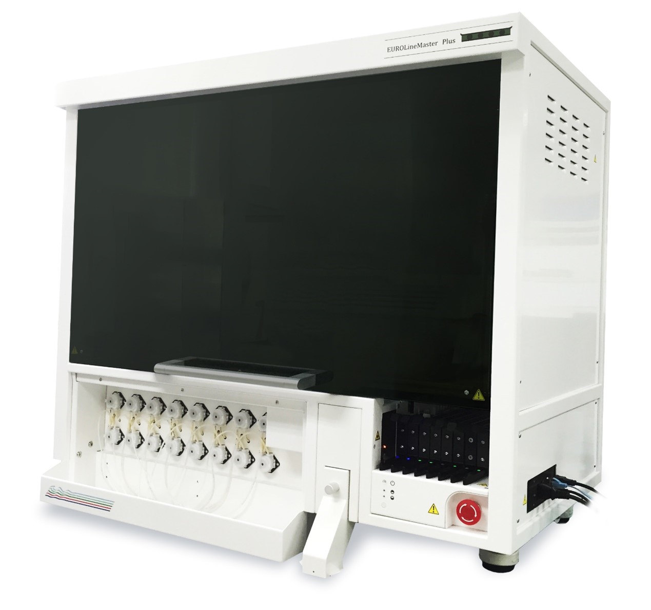 EUROLineMaster Plus-A全自動免疫印跡檢測系統(tǒng)采用歐蒙最新的高通量多參數(shù)免疫檢測技術,是目前使用更先進、應用更成熟的一個多指標檢測技術平臺。儀器具備16個試劑通道,可在一次檢測運行中,組合自身免疫、過敏原和感染診斷領域的檢測。可實現(xiàn)從加樣到結果輸出的全自動操作及全流程管理,實現(xiàn)從樣本識別、樣本稀釋、所有孵育及清洗過程,到自動成像、圖像分析與處理的全自動操作,最終出具可自定義的檢測報告,可真正實現(xiàn)無人值守。
